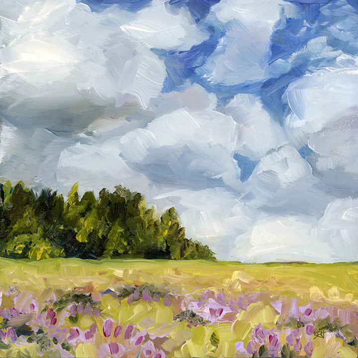 Here’s one of the pieces from the time when I was practicing good manners. It's always good to learn the rules first. This one is a print from my moody landscape period, from an original in oil on 10"x10" cradleboard. Each print is on thick matte paper, providing a non-glare richness of color and contrast when viewed from any angle.