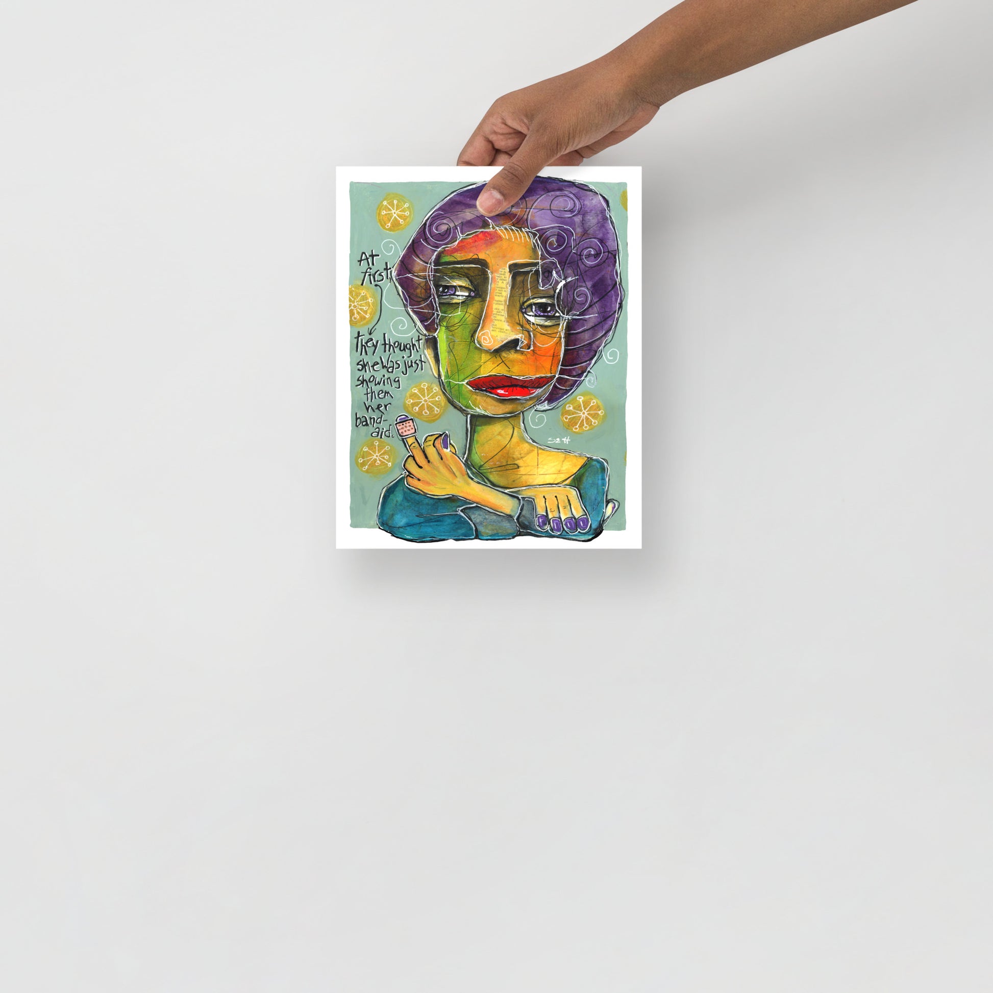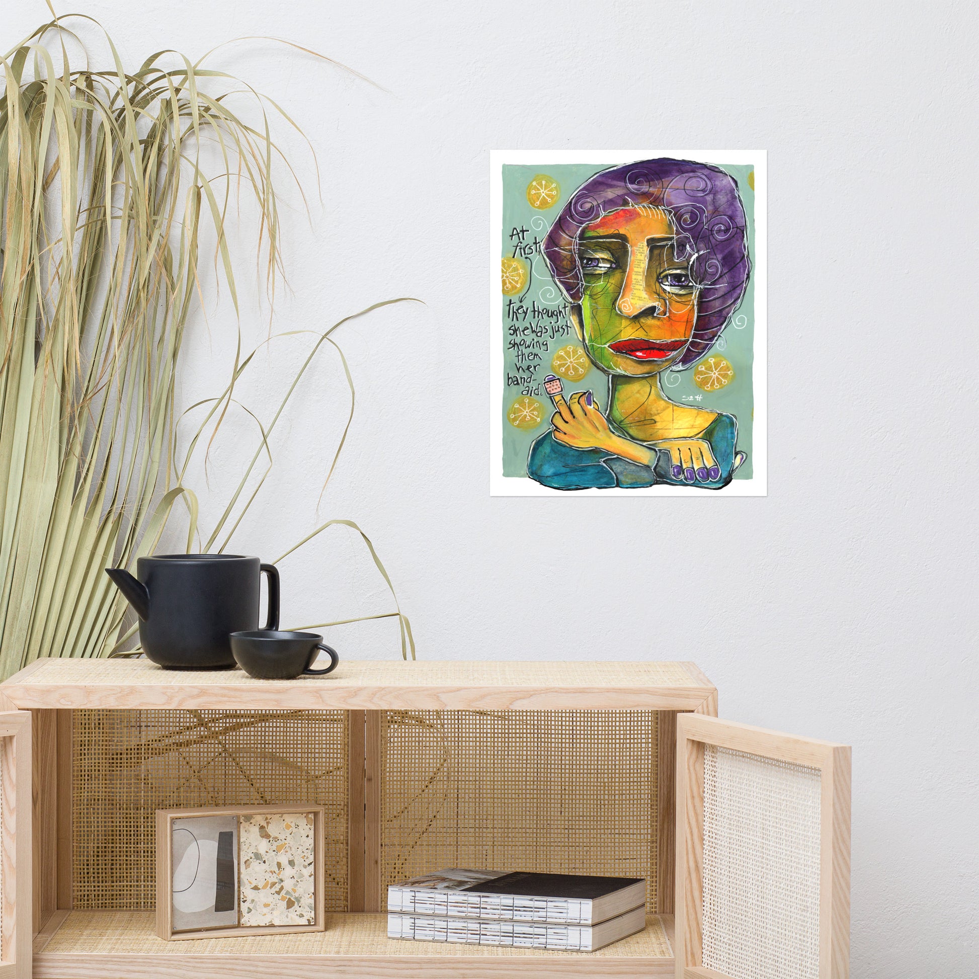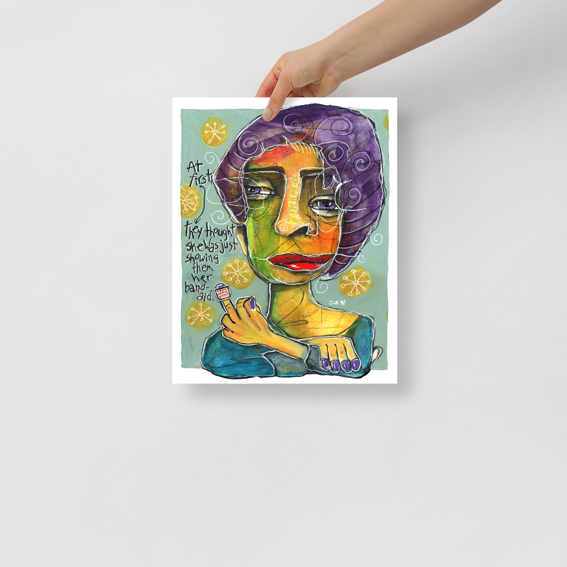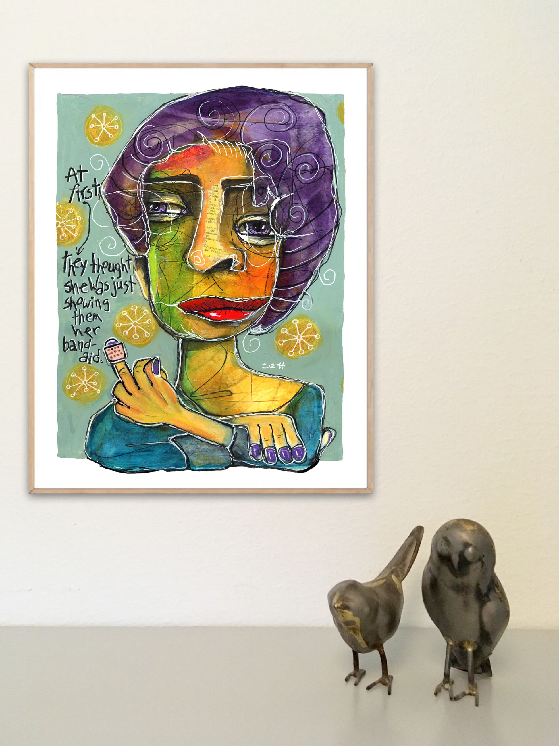 Each museum-quality print is from an original multi-media work on paper using inks, paint, collage and mark-making. Each print is on thick matte paper, providing a non-glare richness of color and contrast when viewed from any angle.